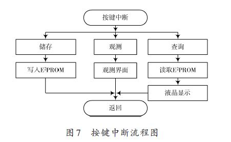 系統(tǒng)初始化以后,各個傳感器開始采集數(shù)據(jù)、時鐘芯片開始計時、單片機開始處理數(shù)據(jù)、液晶開始實時顯示數(shù)據(jù)。當(dāng)觸發(fā)不同的功能按鍵,系統(tǒng)進入按鍵中斷,執(zhí)行儲存、查詢數(shù)據(jù)等功能。值得注意的是,傳感器采集的數(shù)據(jù)受外界因素的干擾,有可能采集到存在誤差較大的數(shù)據(jù),為了保證測量的精確性,對采集到的數(shù)據(jù)每10個做平均值,其平均值作為最終的測量數(shù)據(jù),進行顯示、儲存,以減小測量誤差。