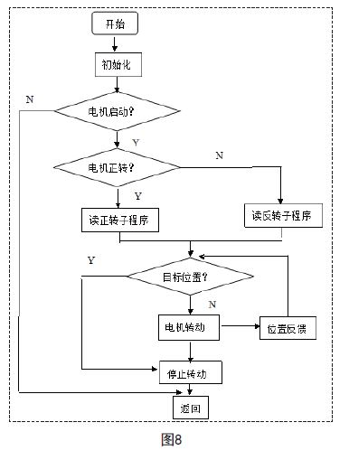 注塑機(jī)中模擬量的輸入主要是電子尺。電子尺是一種電阻式的位移傳感器.其工作原理是采用可變電阻分壓原理.將線位移轉(zhuǎn)換成傳感器的電阻變化.并轉(zhuǎn)變成電壓信號(hào)。本控制系統(tǒng)采用3支電子尺分別對螺桿位移、動(dòng)模板位移及頂出桿位移進(jìn)行檢測.從而完成對運(yùn)動(dòng)位置的控制。流程圖如圖6所示。