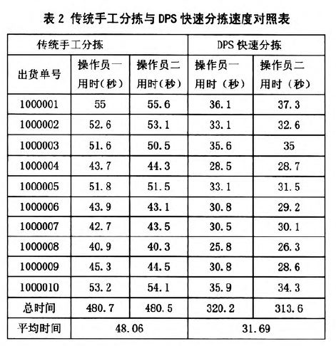 使用DPS能分揀系統(tǒng)后,效率比傳統(tǒng)手工分揀提高了34%,具體數(shù)值見(jiàn)表2.