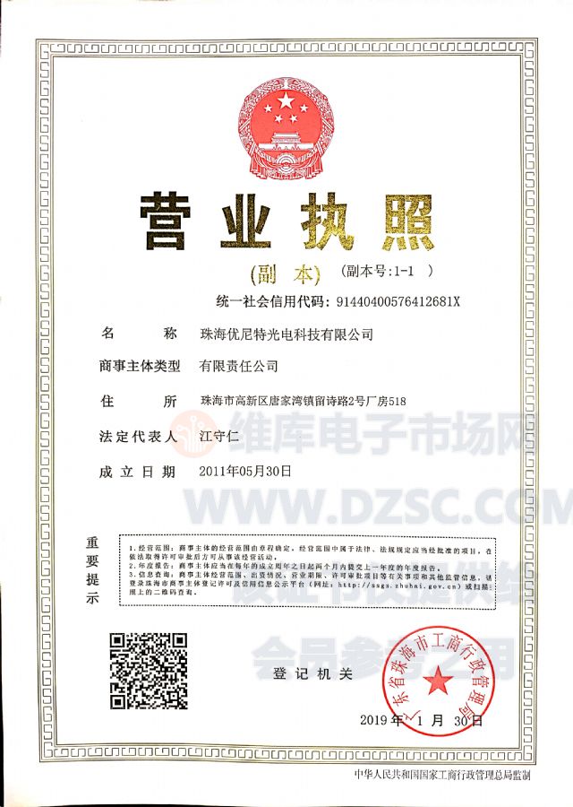 公司名稱:珠海優(yōu)尼特光電科技有限公司